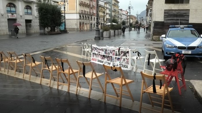 Tante sedie con un nastrino nero a ricordare tutte quelle che rimangono vuote nelle case italiane dove si è perso un familiare a causa degli incidenti stradali. Anche ad Avellino, davanti la chiesa del Santissimo Rosario, si è rinnovato l'appuntamento con la giornata mondiale e nazionale in ricordo delle vittime della strada.