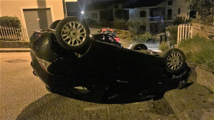 La vettura una lancia y, nonostante avesse il freno a mano tirato ha iniziato lentamente la sua corsa verso la discesa schiantandosi prima sul lato sinistro di un muraglione che costeggia la chiesa per poi spostarsi verso l'ingresso di un'abitazione e un marciapiede in maniera violenta fino a ribaltarsi completamente.