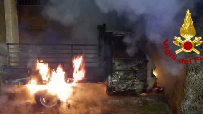 Apecar in fiamme a Serino, vigili del fuoco e carabinieri a lavoro