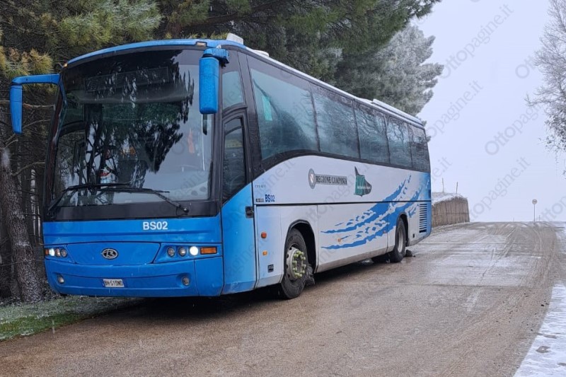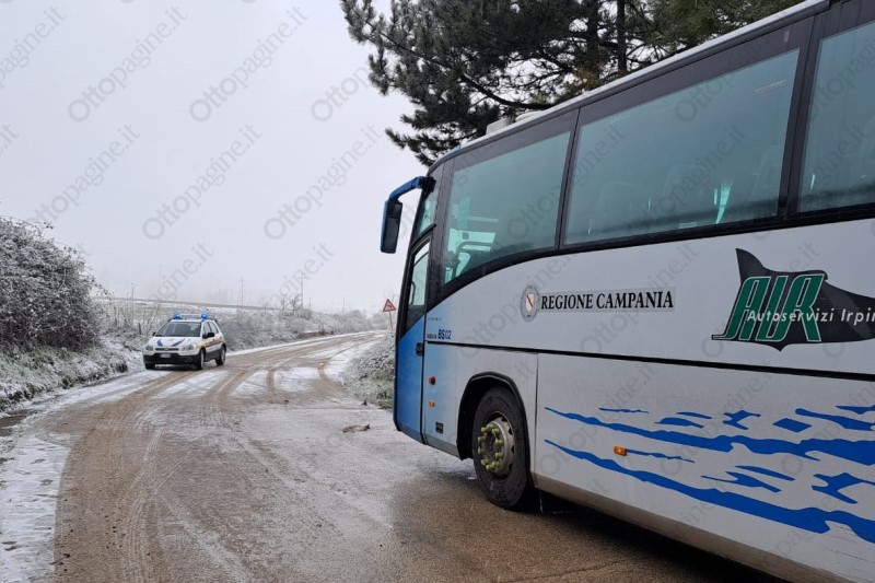 Mattinata da incubo nella Valle del Cervaro per una comitiva di studenti di Montaguto diretti a scuola ad Ariano Irpino. Un pullman dell'Air è rimasto bloccato dopo essersi avventurato lungo la strada impervia di Ciccotonno nel territorio di Savignano Irpino. Sono dovuti intervenire i carabinieri insieme all'ufficio tecnico del comune. Subito avvisato il sindaco Fabio Della Marra.