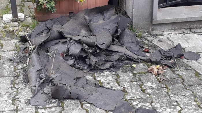 Fogli di guaina catramata lungo i viali, spazzati via dal vento. E' accaduto all'interno del cimitero di Ariano Irpino. A fare la scoperta sono stati i visitatori. Il distacco è avvenuto sulla copertura delle tombe, nella parte nuova del luogo sacro.