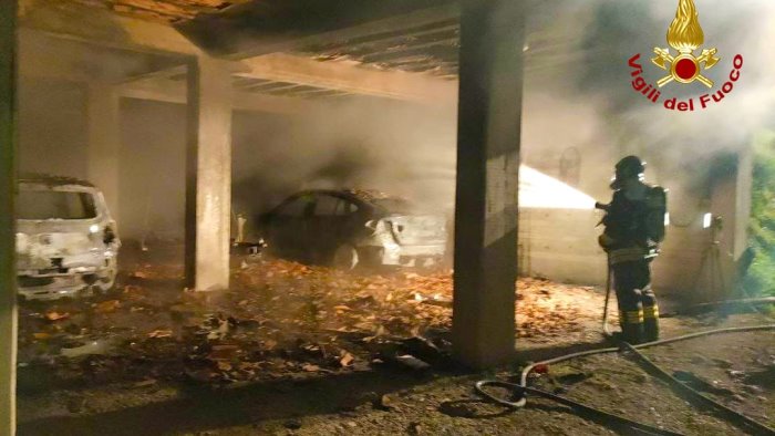 E i militari della compagnia di Solofra indagano su un altro incendio avvenuto alle 3'45 a Montoro in via Campo Barone. Le fiamme si sono sviluppate all'interno di un garage di una villetta, dove erano parcheggiate diversi mezzi. Due le squadre della sede centrale del Comando di via Zigarelli intervenute. L'intervento è stato complicato. Il fuco ha distrutto due auto e un carrellino- In questo caso a scopo precauzionale è stata fatta evacuare la famiglia residente nella villetta. Per la messa in sicurezza della struttura che ha riportato danni al solaio, ci sono sono volute circa tre ore di lavoro. I carabinieri stanno cercando di verificare cosa abbia innescato l'incendio. E' stato ascoltato anche il proprietario delle auto, un agricoltore del posto. Nessun dubbio sulla natura delle fiamme: si tratta di un incendio doloso.