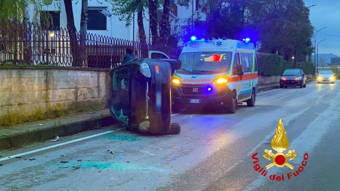 Per cause in corso di accertamento, un'auto dopo aver sbandato improvvisamente, si è ribaltata finendo la sua corsa tra il marciapiedi e un muretto. E' successo alle 6.00 stamane in via Molinelle, a Monteforte Irpino. Sul posto sono giunti i vigili del fuoco dalla centrale operativa di Avellino.