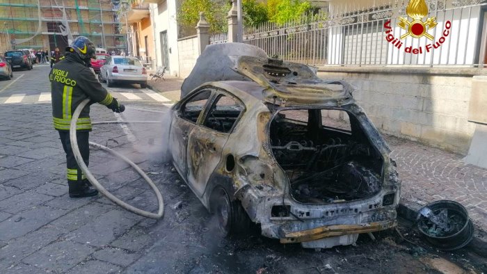 Avella, auto in sosta sul viale San Giovanni distrutta dalle fiamme