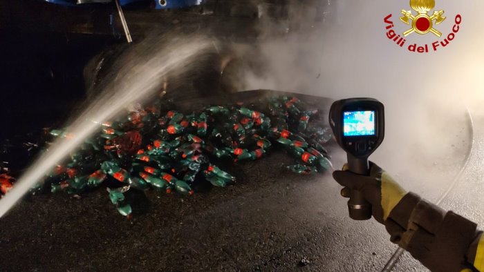 Nella tarda serata di ieri 13 maggio i vigili del Fuoco di Avellino sono intervenuti sull'autostrada A16 Napoli - Canosa, al km. 70,300 in direzione Canosa, nel territorio del comune di Bonito, per un incendio che ha interessato un autotreno che trasportava acqua minerale. Il camion partito da Avellino e diretto a Foggia durante la marcia ha preso fuoco. Sul posto la squadra del distaccamento di Grottaminarda, una squadra dalla sede centrale di Avellino supportate anche da un'autobotte sempre della sede centrale. Ci sono volute circa due ore per lo spegnimento e la messa in sicurezza.