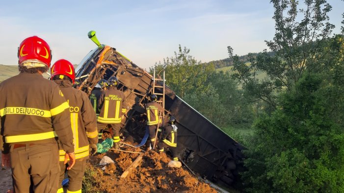 Il timore iniziale era quello di trovare altri corpi nella scarpata sotto il mezzo di trasporto. E' stato bravo sin dal primo momento, l'autista del bus nel gestire una situazione difficilissima e delicata, mai capitata prima, dopo anni di lavoro svolto sempre con grande professionalità ed esperienza. Ha sperato fino all'ultimo che non vi fossero vittime nella scarpata sotto il pesante mezzo, trando poi un sospiro di sollievo. Da Avellino è giunta l'autogru in supporto ai vigili del fuoco di Grottaminarda e Bisaccia.
