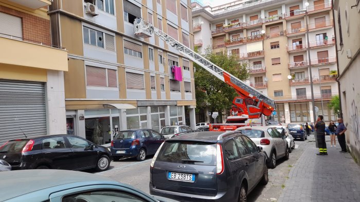 Momenti di paura nella tarda mattinata di oggi ad Avellino in pieno centro. In via Crescitelli, nel palazzo all'angolo con via Pionati c'era una persona che non rispondeva ai vicini. E' stato richiesto con urgenza l'intervento dei vigili del fuoco del comando provinciale che sono giunti sul posto in pochissimi minuti, Con un'autoscala uno dei pompieri è riuscito a introdursi nell'abitazione. Tanti i residenti e i passanti con il fiato sospeso che si sono fermati a seguire l'intervento.