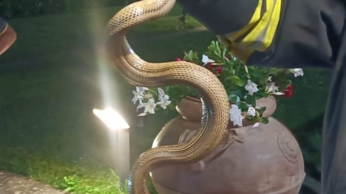 Il Cervone, questa la razza del serpente, una volta recuperato è stato affidato al servizio veterinario.