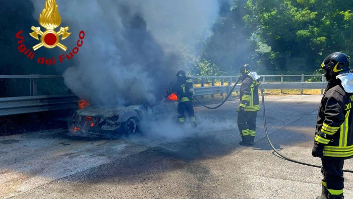 I Vigili del Fuoco di Avellino intorno alle ore 12'00 di oggi 11 luglio sono intervenuti sull'autostrada A16 Napoli - Canosa, al Km. 32,900 in direzione Canosa, nel territorio del comune di Monteforte Irpino per un incendio di un'autovettura in transito. Le fiamme che hanno avvolto il veicolo sono state spente e messo in sicurezza l'area, per l'uomo alla guida nessuna conseguenza tranne un comprensibile spavento.
