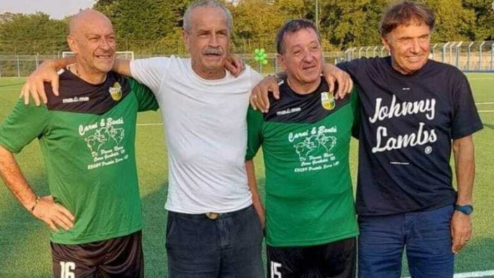 Doveva essere una rimpatriata tra vecchi amici appassionati del pallone. E, invece, la sfida è finita in tragedia sul campo di Altavilla Irpina. Si è fermato il cuore di Gianni Vietri, 61 anni, direttore delle Poste Italiane, che nella foto è il primo a sinistra al fianco di Tonino Iandolo, Franco Spiezia e Gianni Montanile, tutti personaggi che hanno sempre manifestato grande passione per il calcio Avellino.
