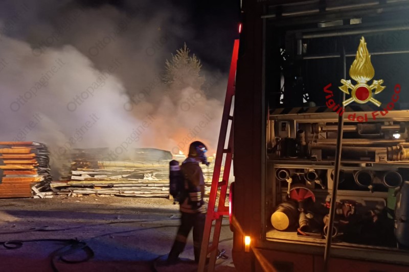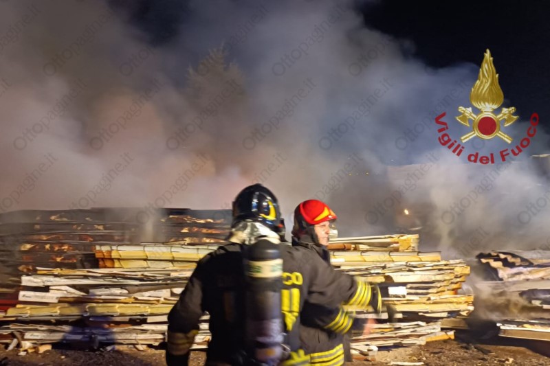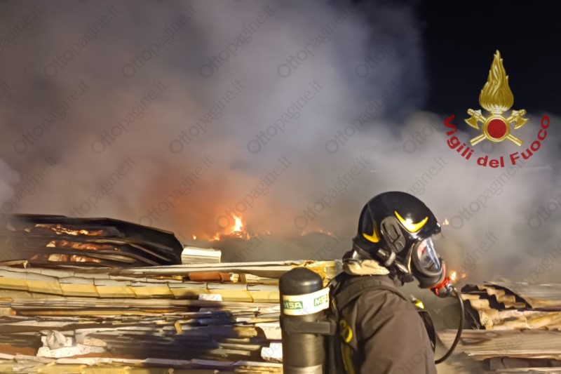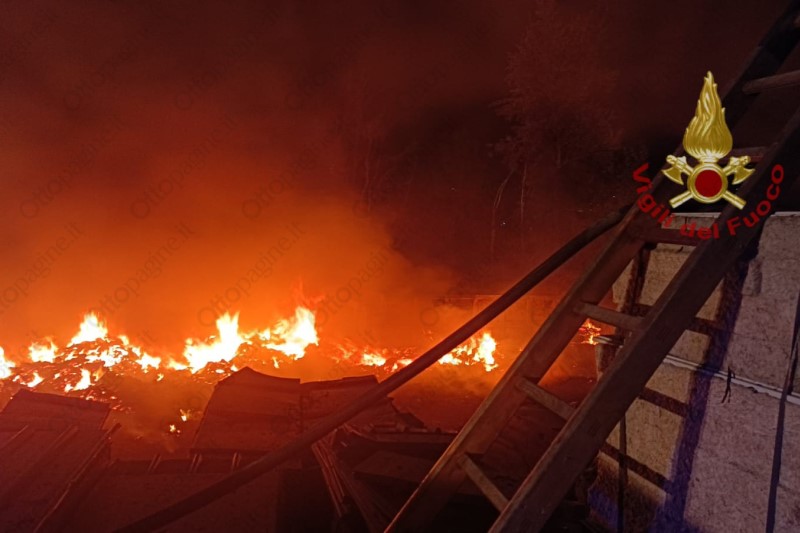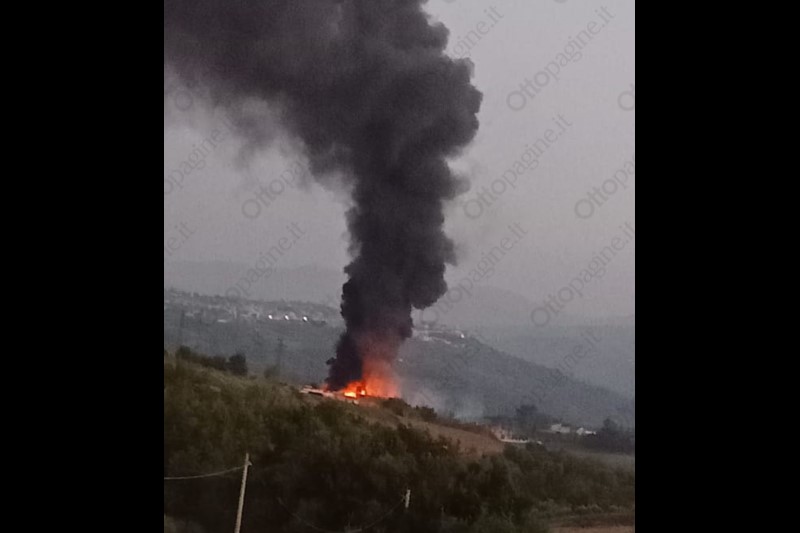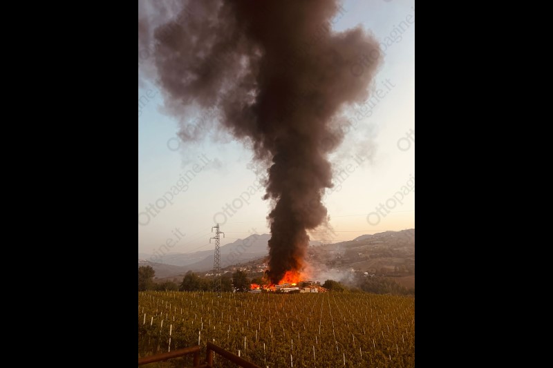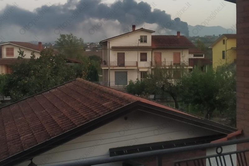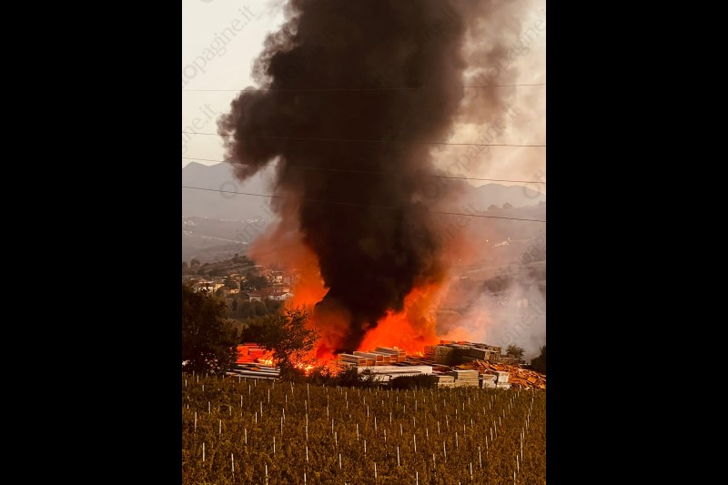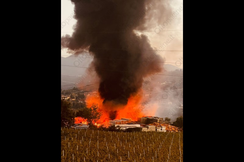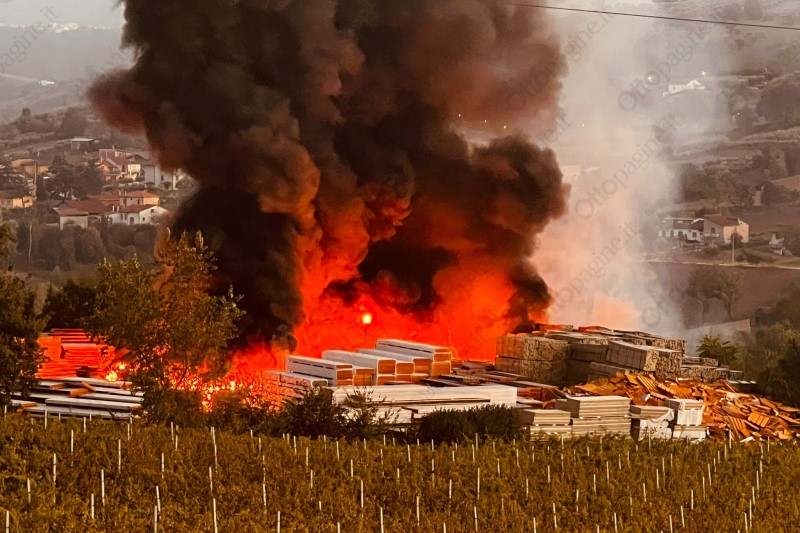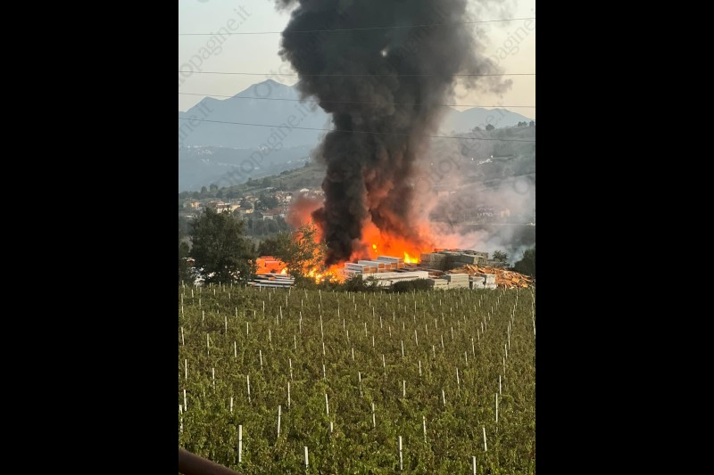 Colonna di fumo nero e fiamme, brucia deposito a Torre Le Nocelle