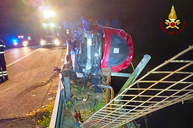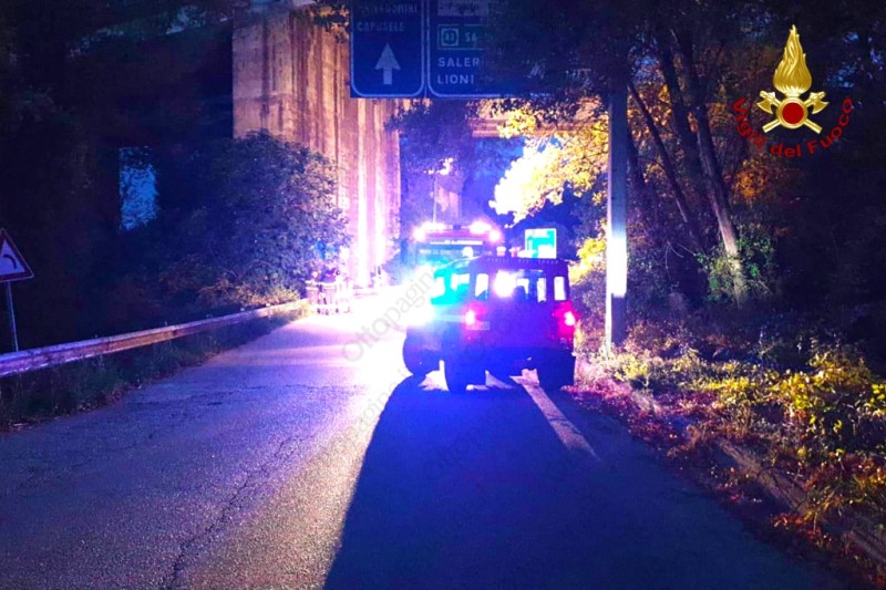 Un volo di oltre trenta metri e la morte. Ancora una croce e sangue sull'asfalto sulla Fondo valle Sele, dove stanotte dopo le 4 si è verificato un tragico incidente stradale. A perdere la vita un 33enne di Caposele. I Vigili del Fuoco di Avellino alle ore 04'15 sono intervenuti sulla Fondo Valle Sele SS 691, al Km. 18'800 nel territorio del comune di Calabritto, per il grave incidente stradale, che ha visto coinvolta una sola autovettura, su cui viaggiava il 33enne. Secondo una prima ricostruzione il giovane, per cause da accertare, ha improvvisamente sbandato andandosi a ribaltare, finendo in bilico sul viadotto. La sala operativa del Comando di via Zigarelli ha immediatamente inviato la squadra del distaccamento di Lioni e quella del distaccamento di Montella, e una volta giunte sul posto, hanno messo in sicurezza l'auto che rischiava di cadere giù, e hanno soccorso il conducente, un uomo di 33 anni residente a Caposele, il quale per il violento impatto era stato sbalzato fuori dall'abitacolo ed era precipitato per circa 30 metri nella vegetazione sottostante. Purtroppo per lui il volo è stato fatale, e il personale medico intervenuto ne ha constatato il decesso. Il corpo è stato recuperato dopo gli adempimenti di rito dai Vigili del Fuoco, sul posto i Carabinieri di Senerchia, Calabritto e Montella che hanno effettuato i rilievi di propria competenza.