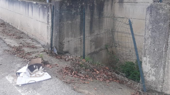 Ancora uno squallido abbandono. Un cucciolo tremante e affamato circondato da mosche è stato ritrovato in un cartone inzuppato da un automobilista sotto il ponte della variante Manna-Tre Torri, accanto ad un pozzetto.