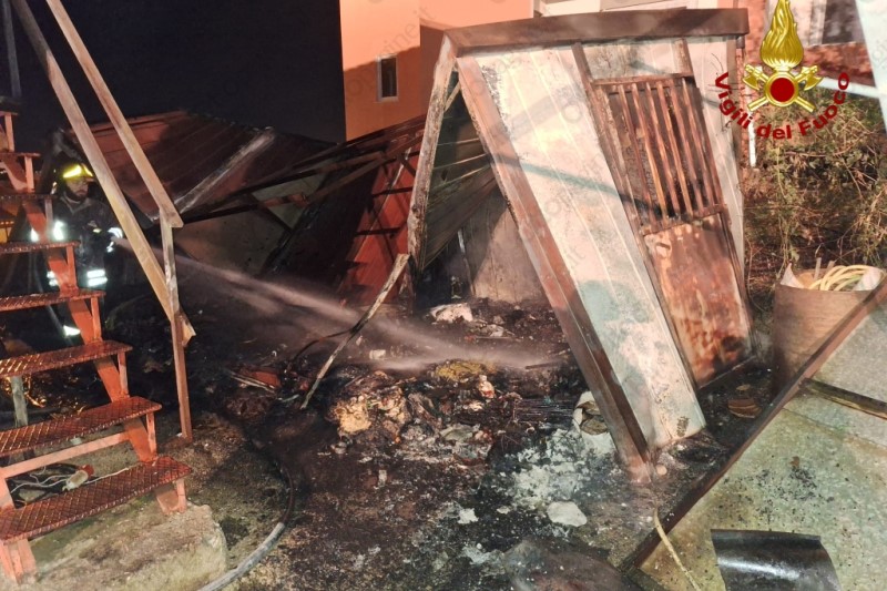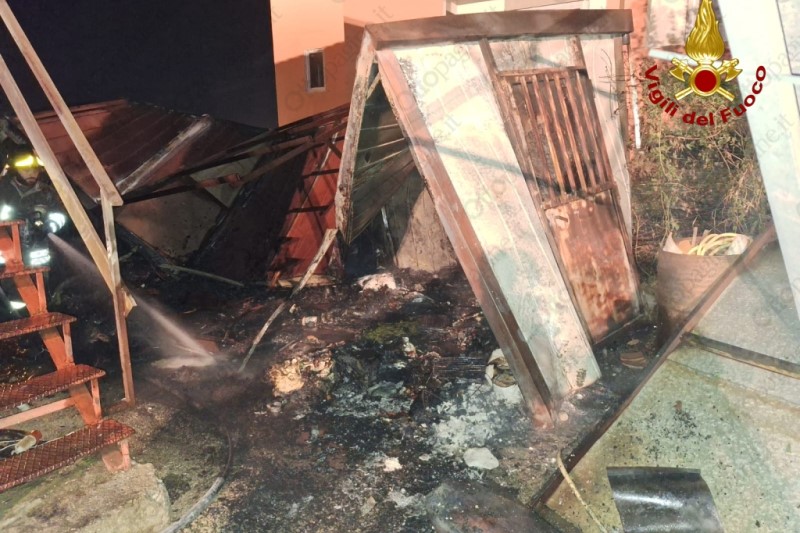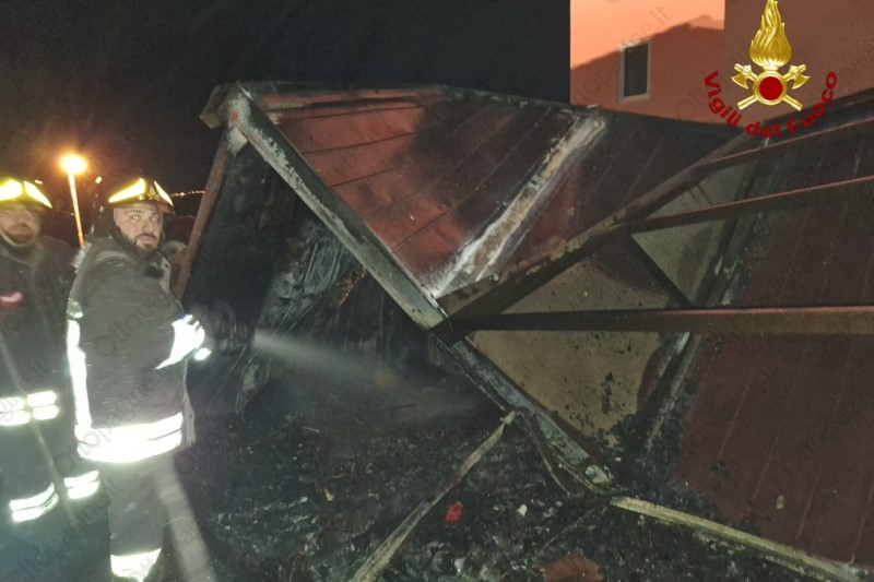 E' successo in via Manzoni. La struttura, un container in ferro adibito conteneva mobili antichi in deposito a pochi passi dall'abitazione e dagli uffici dell'agenzia funebre. Il rogo che poteva avere conseguenze ancora più gravi, ha arrecato danni anche all'abitazione.