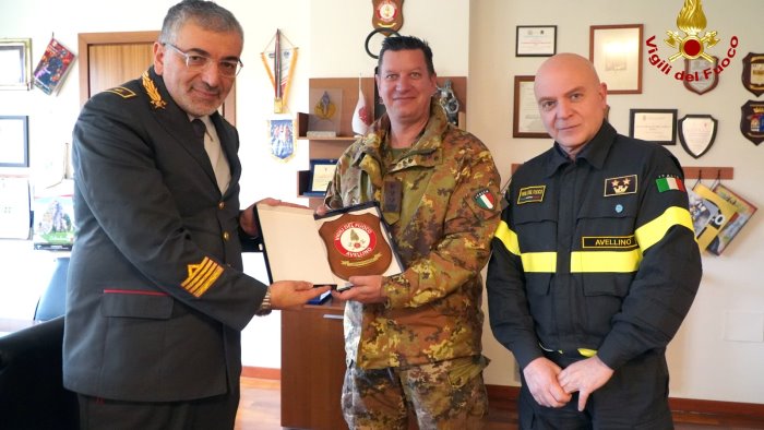 Il colonnello dell'Esercito in visita alla caserma dei vigili del fuoco