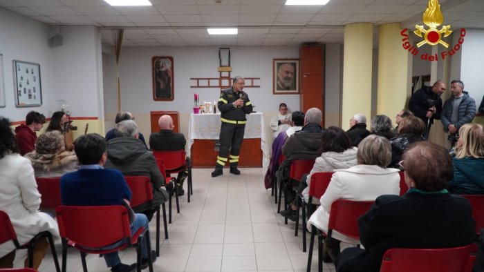 In occasione delle festività natalizie, oggi 21 dicembre, alle ore 10:30, presso la sede centrale del Comando dei Vigili del Fuoco di Avellino, si è celebrato il Precetto Natalizio. La Santa messa è stata officiata da Padre Francesco Lombardo Del Santuario della Beata Vergine Maria del Rosario. Dopo la cerimonia religiosa il Comandante Ing. Mario Bellizzi si è intrattenuto con tutto il personale per un breve bilancio delle attività svolte e per formulare gli auguri per le prossime festività. La presentazione del calendario del Comando ad opera del servizio documentazione e di quello dell'Associazione Nazionale del Corpo sezione di Avellino è stato il passo successivo, che ha visto anche la premiazione degli atleti dei Vigili del Fuoco di Avellino che si sono contraddistinti durante il 30° campionato nazionale di podismo tenutosi ad Avellino lo scorso 8 dicembre.
