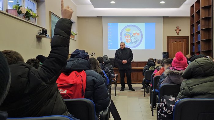 Dopo un importante momento di dialogo sulla legalità e sull’importanza che lo sviluppo di tale sentimento riveste nell’ambito della società civile quale valore fondamentale e capitale comune, gli alunni hanno assistito alla proiezione di un filmato che ha dettagliatamente illustrato le varie attività svolte dai Carabinieri, rese loro note anche grazie a vari telefilm.