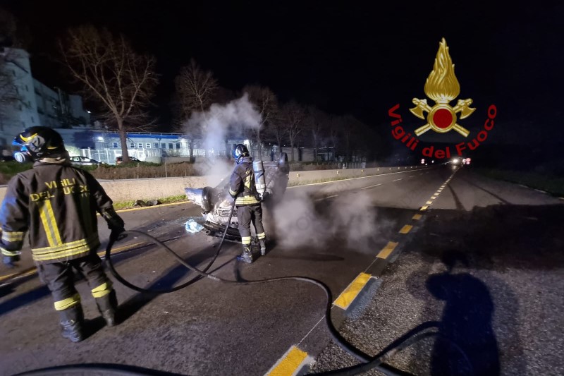 Auto prende fuoco e si ribalta sul raccordo Avellino-Salerno: donna miracolata