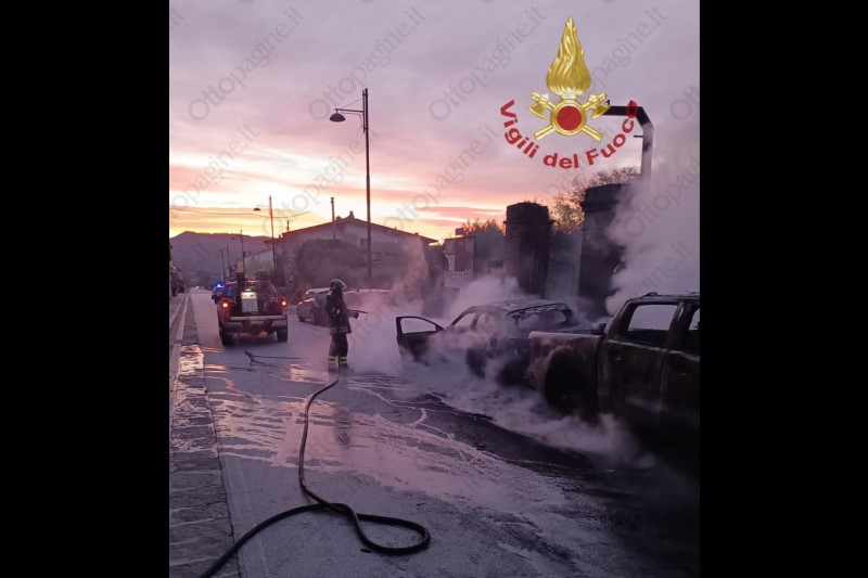Alba di fuoco a San Martino V. C., auto in fiamme e paura per perdita di gas