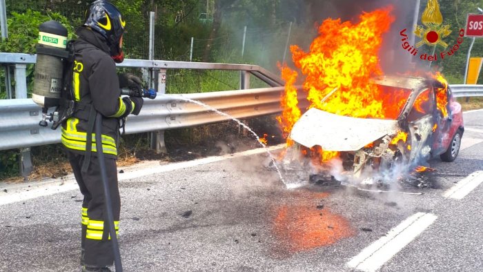 Paura nel pomeriggio lungo l'A16 Napoli-Canosa. Un'auto ha preso improvvisamente fuoco mentre viaggiava in direzione Napoli. E' successo al km 36. Immediato l'intervento dei vigili del fuoco di Avellino. Le fiamme che hanno avvolto il veicolo sono state spente e l'area messa in sicurezza dai caschi rossi. Luomo alla guida, proveniente da Bari e diretto nel Napoletano, non ha subito conseguenze, oltre che un comprensibile spavento.