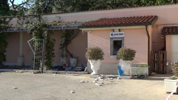 I malviventi si sono dati alla fuga a bordo di una Bmw di grossa cilindrata. Accertamenti in corso da parte dei carabinieri anche attraverso l’ausilio delle immagini del sistema di videosorveglianza. I pezzi della struttura fatta saltare in aria sono volati anche lungo la strada a diversi metri di distanza.