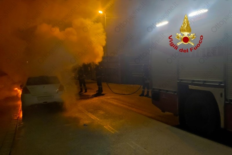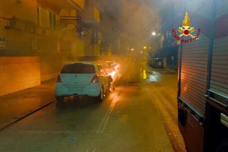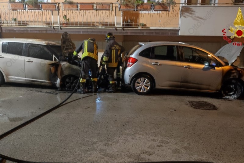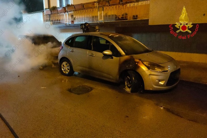 Erano le 3.45. Le fiamme hanno interessato la parte anteriore di una Citroen C3 e di una Suzuki Swift, parcheggiate in strada.