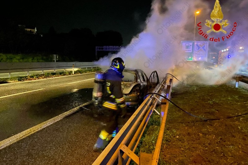 Un'auto in transito prende improvvisamente fuoco. Paura in serata lungo l'A16 Napoli-Canosa. E' successo al km 41,200 nel territorio del comune di Mercogliano. E' qui che sono intervenuti prontamente i vigili del fuoco di Avellino.