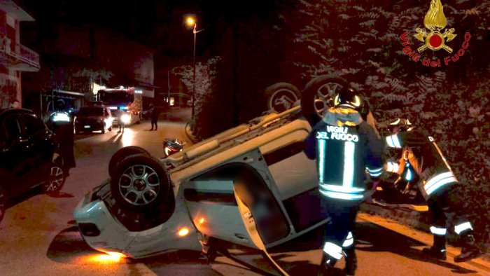 Un'auto condotta da una ragazza di 27 anni, per cause in corso di accertamento, dopo essersi schiantata contro una vettura parcheggiata in strada, si è ribaltata. E' successo poco dopo le 18.00 ad Atripalda in via Serino.