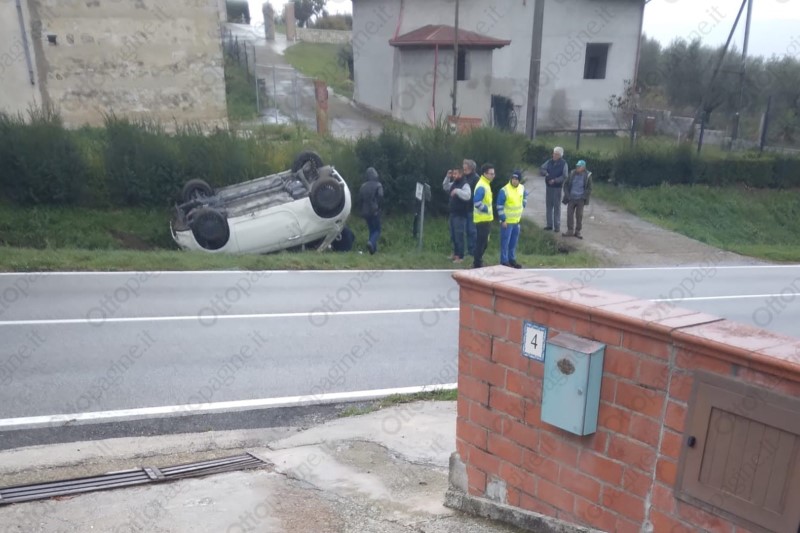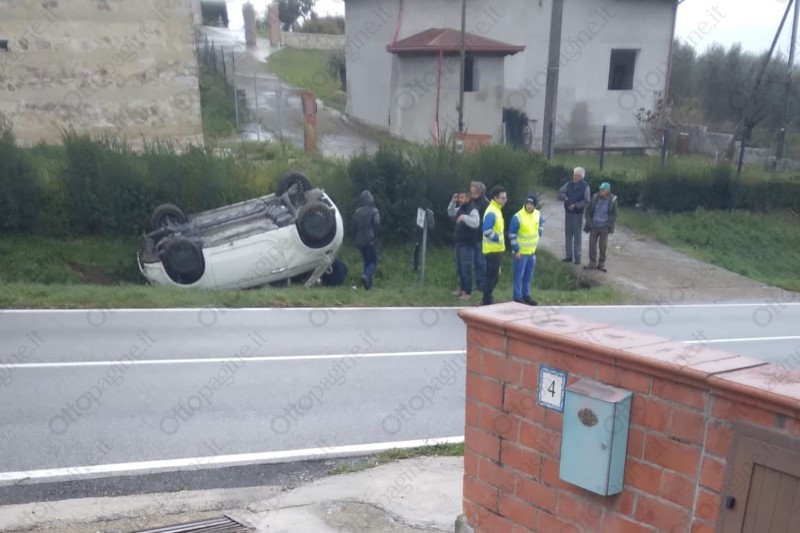 Alla guida della vettura, ribaltatasi nella cunetta una ragazza di 21 anni del luogo. E' il terzo incidente simile nello stesso punto pericoloso da poco più di un mese, oltre agli altri mortali avvenuti nel corso degli anni sempre a causa dell'asfalto anomalo e in pendenza, privo di qualsiasi segnale di pericolo.