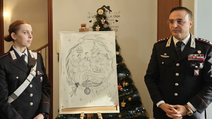 A suggello dell’incontro, è stata donata ai carabinieri una caricatura che ritrae i protagonisti dell’evento. L’opera, accolta con sorrisi e applausi, è stata realizzata dal noto artista irpino Pellegrino Capobianco, in arte Crinos, che, invitato a partecipare all’evento, ha curato la sua creazione nel corso delle varie fasi.