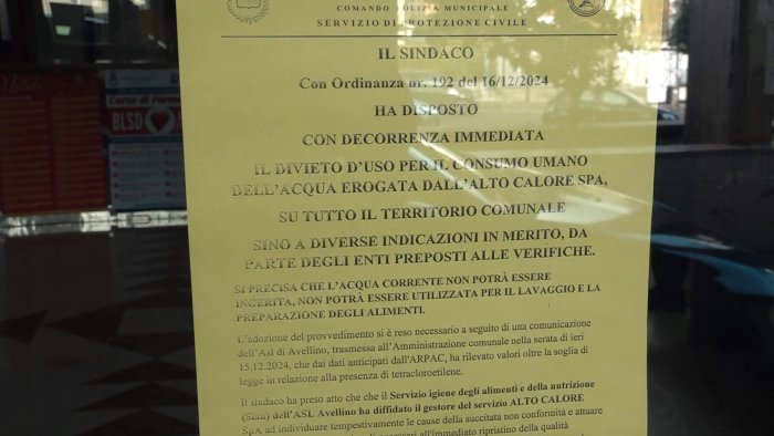 Divieto di utilizzo dell'acqua potabile a Montoro. Il secondo comune della provincia di Avellino fronteggia l'emergenza tetracloroetilene con l'acquisto di bottiglie di minerale andando oltre l'ausilio garantito da Protezione Civile e Alto Calore. Nel pomeriggio, a partire dalle 15.30, comitato d'urgenza in Prefettura per trovare una soluzione nell'immediato. In città monta la polemica: la speranza di una risposta immediata da parte di istituzioni ed enti e di nuovi dati utili per rispondere alle esigenze della popolazione. Si punta al ritorno alla normalità in tempi brevi.