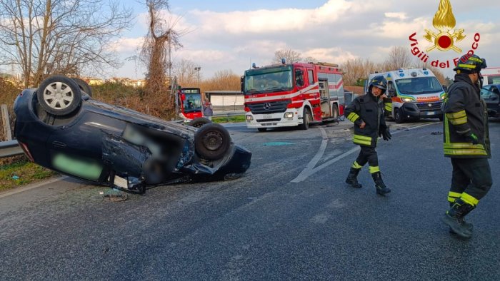 Pauroso incidente tra due auto lungo la strada provinciale 88, all'intersezione con la 7 statale 7 bis ad Avellino. Nel violento impatto una delle vetture si è ribaltata. Il conducente di quest'auto, un uomo, è rimasto incastrato nell'abitacolo. Dopo essere stato liberato dai vigili del fuoco di Avellino, immediatamente intervenuti sul posto è stato affidato alle cure dei sanitari del 118, che lo hanno trasportato all'ospedale Moscati di Avellino per le necessarie cure.