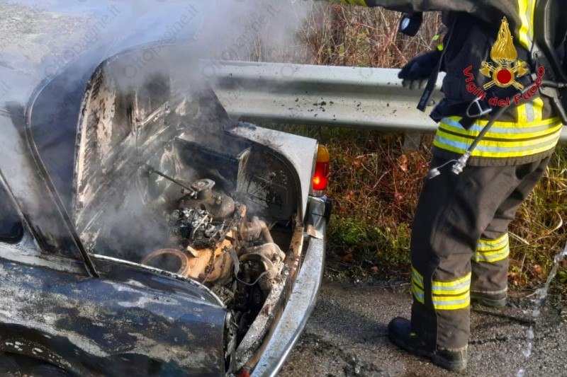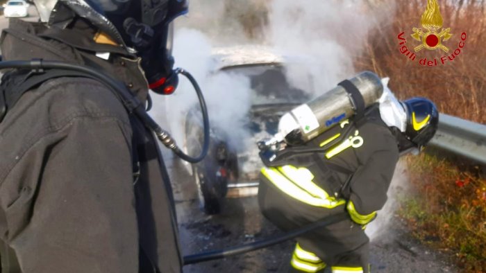 L'uomo un 74enne originario di San Mango Sul Calore, stava percorrendo la strada in direzione Avellino, quando ha notato il fumo e le fiamme provenire dal motore.