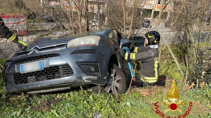 Vigili del Fuoco di Avellino durante la mattinata di oggi 4 febbraio sono intervenuti alla periferia della Città, e più precisamente in via Valle Santa Caterina località Picarelli ,dove un'autovettura è finita in un scarpata. Una donna ,trentasettenne del posto è rimasta ferita ed è stata trasportata presso l'ospedale Moscati di Avellino per essere sottoposta a cure mediche. Per il recupero e la messa in sicurezza del veicolo si è reso necessario l'intervento dell'autogrù dalla sede di via Zigarelli.