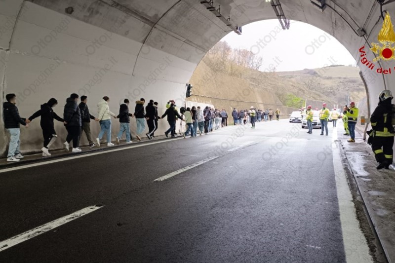 Il personale all’interno del bus, con l’ausilio dei primi soccorritori, Impresa di presidio gallerie Gsa, dei vigili del fuoco del distaccamento di Grottaminarda e di Bisaccia, seguiti da una squadra proveniente dalla sede centrale di Avellino, coordinate dal funzionario di guardia e dal capo turno provinciale, dalla polizia stradale, e dal personale medico, veniva posto in sicurezza attraverso l’evacuazione immediata dalla galleria ponendo gli alunni in un luogo protetto e pronti per essere trasbordati su un pullman sostitutivo e permettere l’allontanamento in sicurezza dal luogo dell'incidente.