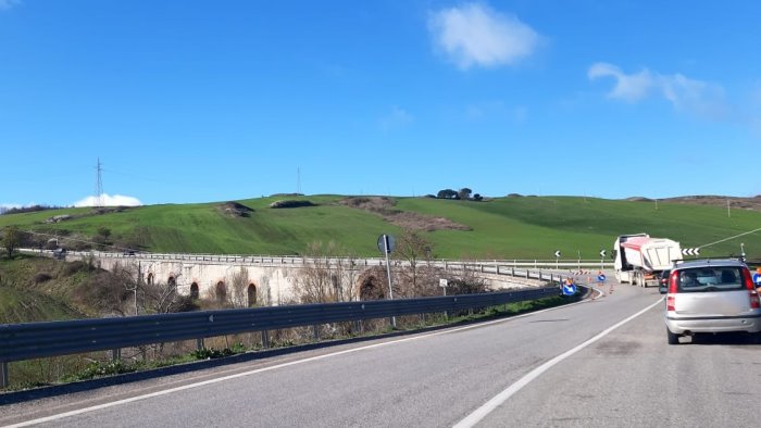 Senso unico alternato con impianto semaforico e restringimento della carreggiata lungo la statale 90 delle puglie ad Ariano Irpino. Ponte Gonnella lungo il tratto che da Camporeale porta allo scalo di Savignano poco dopo la storica fontana, mostra segnali evidenti di aggravamento.