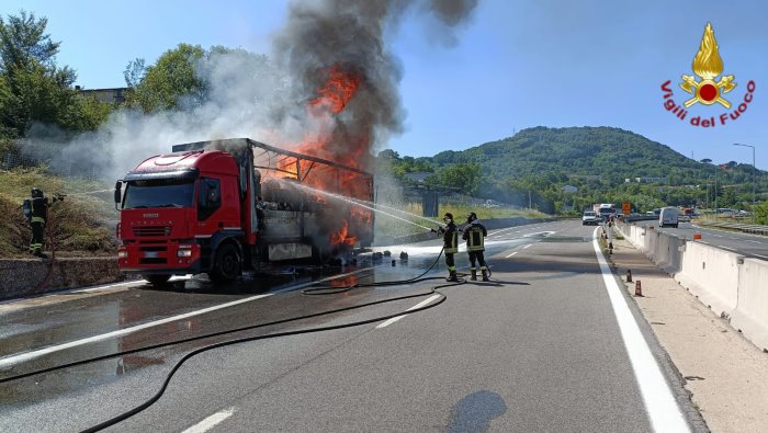 Ci sono volute alcune ore e l'impego di tre squadre dei vigili del fuoco di Avellino, per spegnere l'incendio che stamane ha coinvolto un autocarro carico di materiale plastico per imballaggio, lungo l'autostrada A16, in direzione Bari, al km 50+150 circa. Non sono mancati i disagi. Qui un precedente articolo e video.