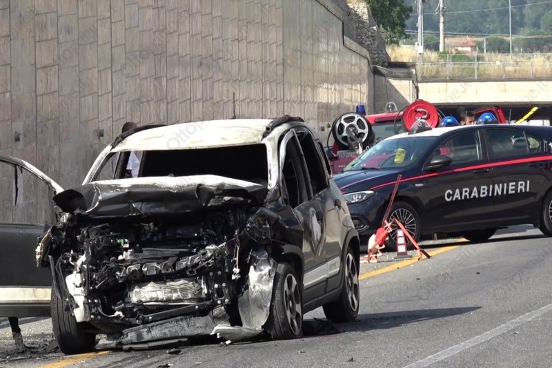 Nel sinistro sono rimaste coinvolte due autovetture, con a bordo un uomo di 42 anni su una vettura, e la signora Rita di 73 anni con il figlio di 33 anni sull’altra. A seguito del violento impatto, quest’ultima auto ha preso fuoco. All’arrivo sul posto, i Vigili del Fuoco hanno provveduto allo spegnimento dell’incendio. Tutti i passeggeri si trovavano già all’esterno dei veicoli.