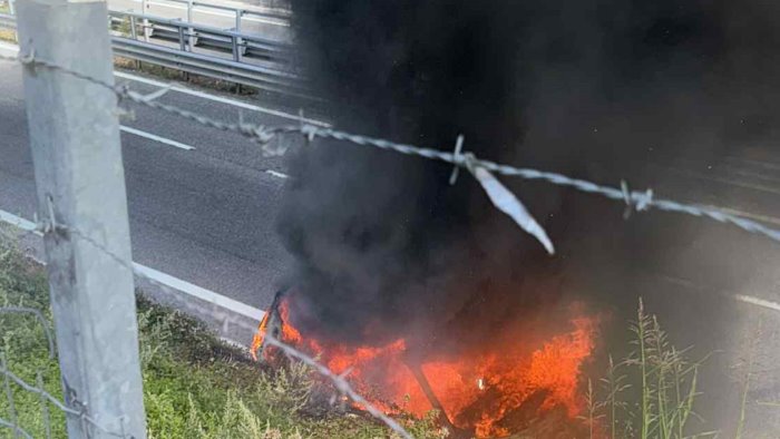 Fiamme in A16, veicolo distrutto dalle fiamme