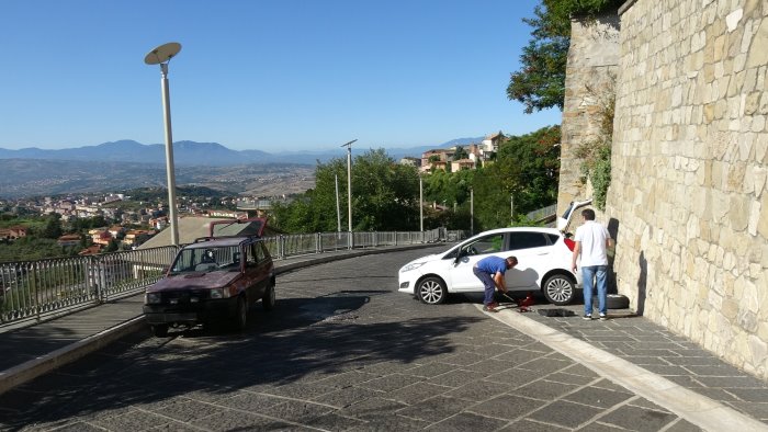 Analogo episodio in zona San Pietro e come già riportato nel precedente articolo: via Maddalena parcheggio ospedale sia lato Ponnola che nella parte sottostante che costeggia l'eliporto, lungo la bretella Russo Anzani, Tranesi, via nazionale San Giovanni, Rione Valle. Un numero di vetture danneggiate che aumenta a questo punto sensibilmente. Non solo gomme bucate e specchietti spaccati ma anche danni alla carrozzeria.
