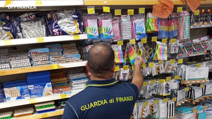 La Guardia di Finanza di Avellino ha sequestrato, in violazione del “Codice del Consumo” di cui al D.Lgs. 206/2005, circa 6.000 prodotti, tra cui materiali per la casa, chincaglieria, articoli di bigiotteria, telecamere, bomboniere, portachiavi per bambini, detergenti per l’infanzia, tutti privi delle indicazioni obbligatorie in lingua italiana, non conformi agli standard di sicurezza e dei requisiti essenziali previsti dalla normativa nazionale e comunitaria.