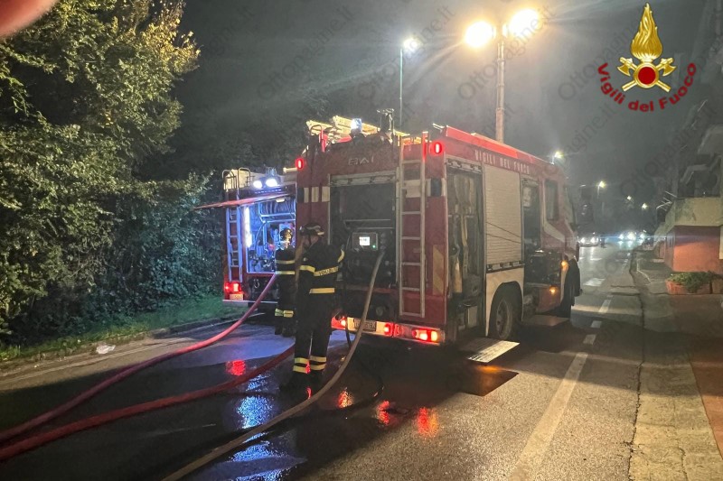 Fortunatamente non si registrano danni a persone, mentre si segnala il danneggiamento esterno di una cabina Enel per l’illuminazione stradale coinvolta parzialmente dall’irraggiamento termico.