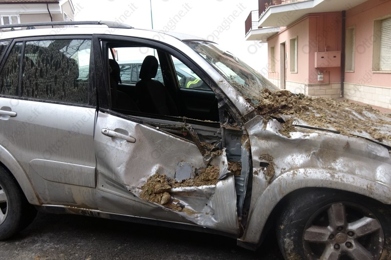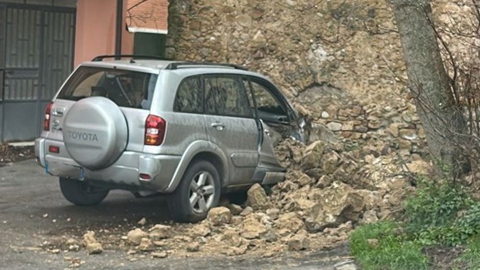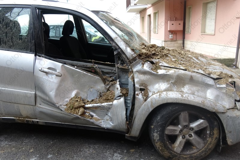 Crolla un vecchio rudere fino a sfondare la fiancata di un Suv Toyota Rav 4 e danneggiare una Skoda parcheggiata accanto.