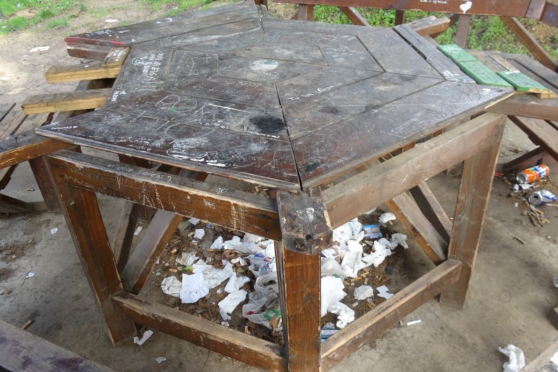 Gazebo in legno devastato, tra rifiuti e indifferenza. Sdegno e rabbia, fa male al cuore vederlo oggi in queste condizioni e l'indignazione più grande è che nessuno, ha mai pagato nel corso degli anni per queste scorribande incivili e irrispettose. Vere e proprie barbarie, per noia, da sempre impunite.