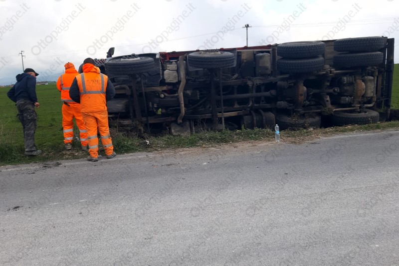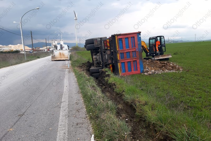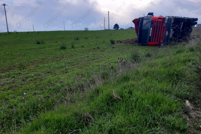 L'autocarro, carico di terreno, si stava recando nel vicino impianto, recupero trattamento di rifiuti speciali non pericolosi "Damaco" di Filippo D'Alessandro, accorso subito sul posto appena saputo la notizia.