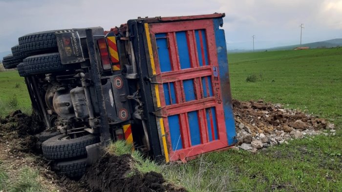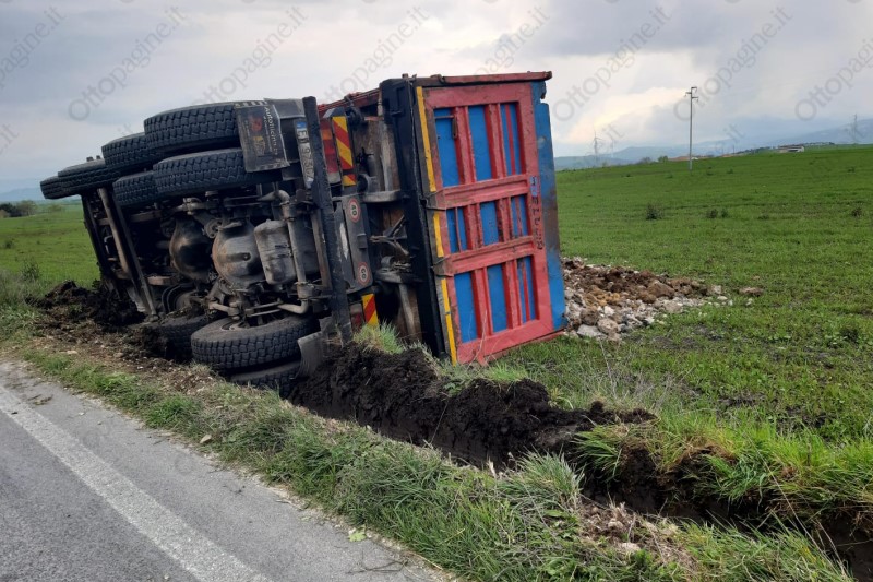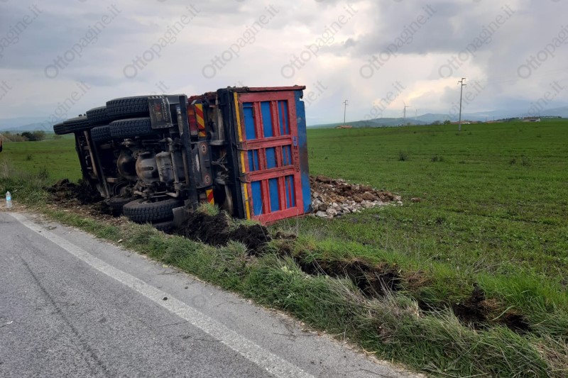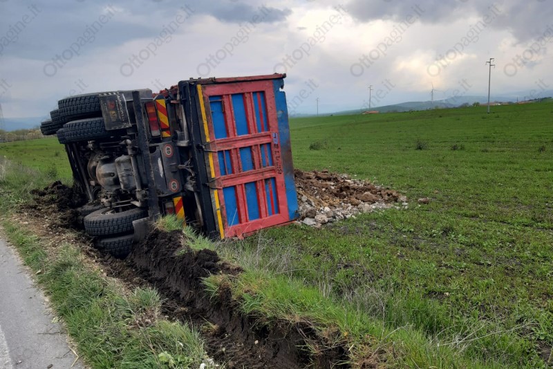 Sorpassato da un'auto che gli avrebbe tagliato la strada, si è spostato sul lato destro, ribaltandosi nella cunetta con il suo autocarro, pur di evitare l'impatto con un'altra vettura che proveniva di fronte.