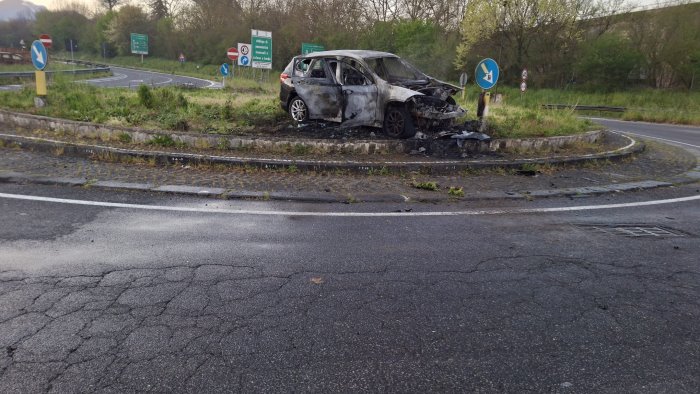 La loro auto è salita sulla rotonda e ha preso fuoco.