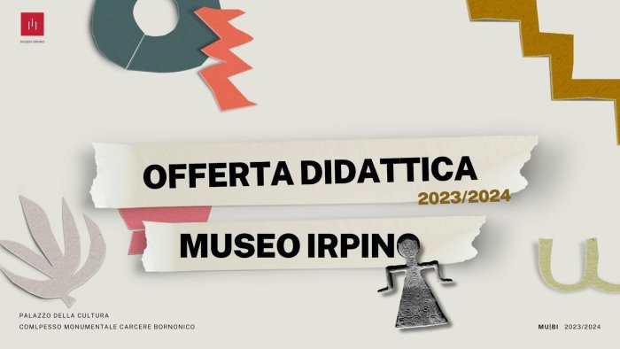 L’offerta didattica 2023/2024 del Museo Irpino è consultabile sul sito internet del Museo all’indirizzo www.museoirpino.it. La prenotazione di tutte le attività può essere effettuata o telefonando allo 0825790733/539 o inviando una mail all’indirizzo info@museoirpino.it
