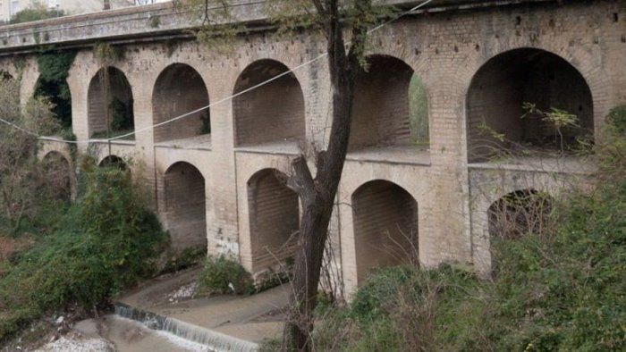 Prima della realizzazione del ponte, il terreno in quella zona scendeva ripido verso il Fenestrelle. Lo si può constatare, attualmente, nella zona a destra dall’ingresso del ponte.