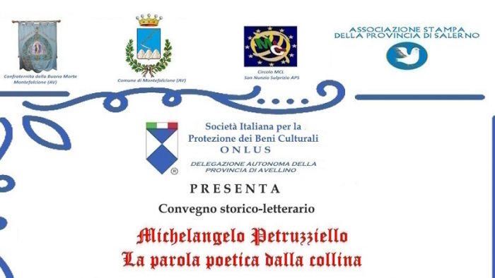 A Montefalcione, a partire dalle 19, nella Confraternita della Buona Morte in via Cardinale Dell’Olio, si terrà il convegno storico-letterario che intende onorare la memoria del latinista di origini montefalcionesi Michelangelo Petruzziello (1902-1961), cultore abile e competente della cultura classica, celebre traduttore di versi latini. L’evento, promosso dalla SIPBC - Società Italiana per la Protezione dei Beni Culturali - Delegazione autonoma della Provincia di Avellino, con il patrocinio del Comune di Montefalcione, del Circolo MCL “San Nunzio Sulprizio” e dell’Associazione Stampa della Provincia di Salerno.